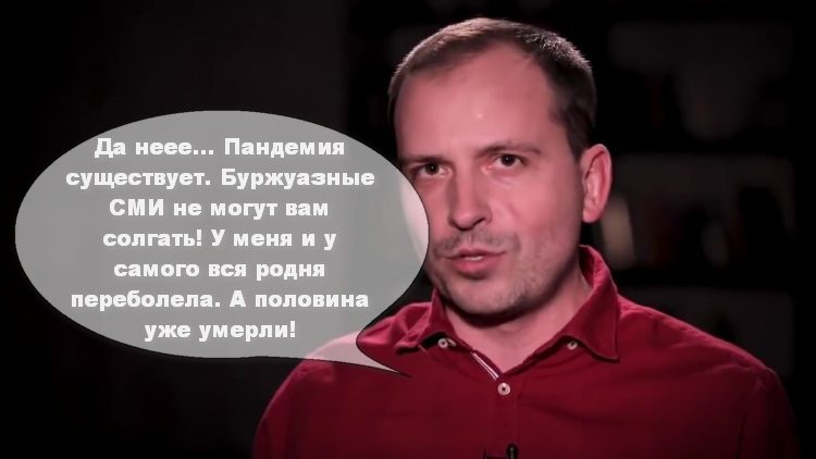 Так что если что случилось — буржуи зарплату рабочим не платят, массово сокращают рабочих и повышают цены на товары — это не рыночек порешал, это не буржуи всячески пытаются сохранить норму прибыли, это не кризис перепроизводства лютует по миру — это всё «пандемия» виновата? Вы же слышали о «пандемии» по федеральным каналам — значит она существует. А кто не хочет верить на слово господам сёминым, соловьёвым и киселёвым — тот конспиролог и агент Госдепа!