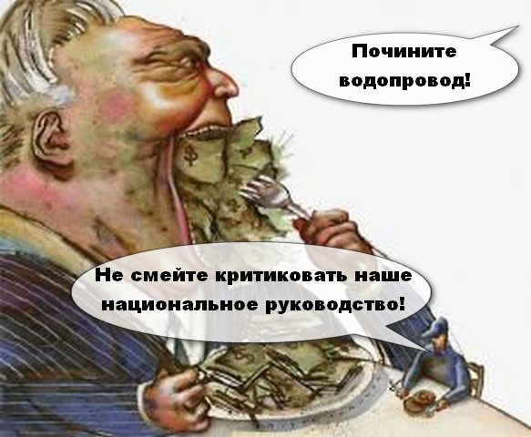 Так вот, например, трудящиеся жители не самого лучшего микрорайона Акжар (г. Алматы, Казахстан) уже почти месяц мучаются без воды. Питьевую воду им приходится покупать в магазинах, тратя на это дело дополнительную часть своих нищенских заработных плат. Ну а чтобы приготовить пищу и постирать одежду, им приходится растапливать снег. А всё почему? Всё потому что в век «инноваций» и «нанотехнологий» навернулся очередной водопровод, который находится в собственности крупных капиталистов — «класса бережливых и хозяйственных собственников», как учит нас буржуазный агитпроп. Учитывая и тот факт, что ремонтники уже почти месяц не могут ликвидировать аварию, проблема носит катастрофический характер. Менять, похоже, требуется всю водопроводную систему в данном районе, причём срочно! Это потому что все предыдущие 32 года, пока хозяева находились у власти, хозяева непрерывно клали на водопроводы свой большой и толстый, предпочитая тратить деньги не на ремонт инфраструктуры, а на свои бл@дские пляски, на банкеты, балы, пиры, на дворцы и предметы роскоши, на бл@дей и сынков, на пропагандонов и силовиков.